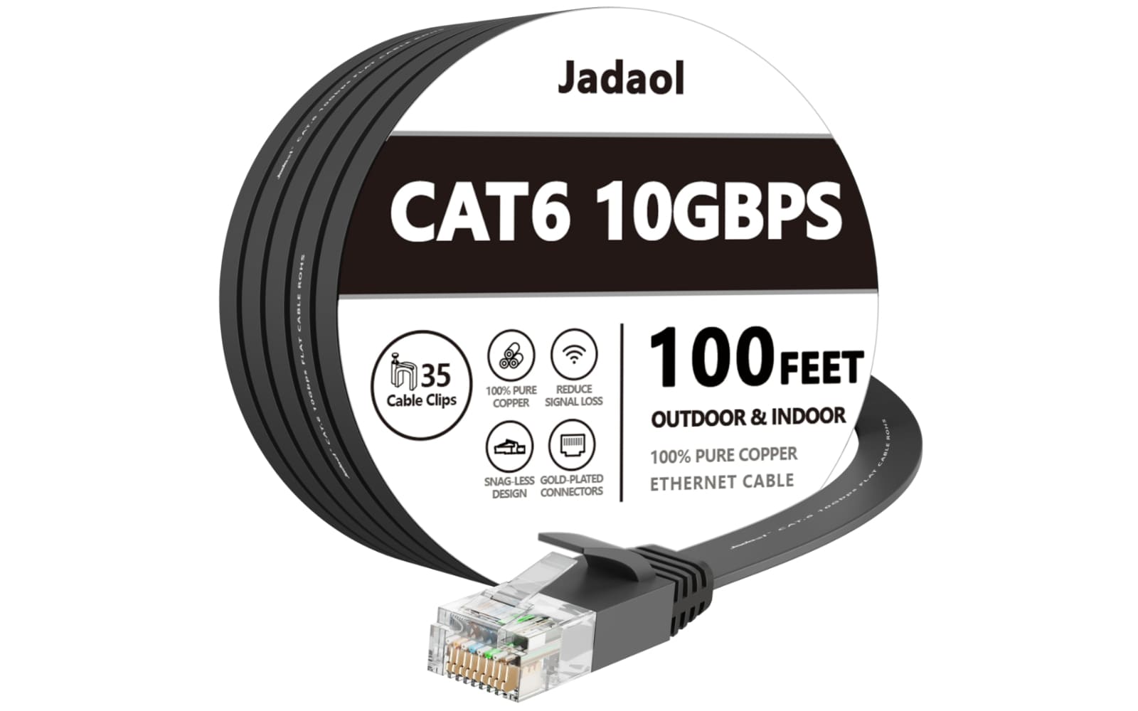 I needed a cable that could withstand outdoor conditions without sacrificing speed, and Jadaol delivered exactly that. I installed their 100ft flat Cat6 cable around my backyard for my outdoor security cameras and it’s been holding up perfectly through rain and sun. The gold-plated connectors fit snugly, and the speed hasn’t slowed down at all despite the long run. The flat shape also helped me run the cable discreetly along fences and walls. Highly recommend for anyone needing durable and fast Ethernet outdoors.